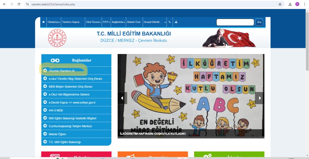 Ana Ekran/ Bağlantılar kısmında bulunan Randevu Al seçeneği ile e-devlet üzerinden randevu oluşturulabilecektir.